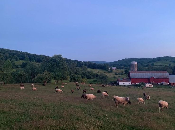 Sheep and barn